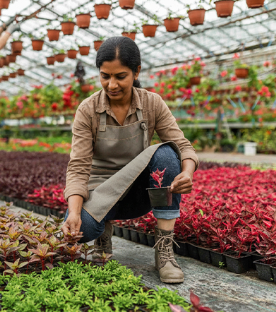 Planting of lawns, shrubs, trees, climbers, indoor plants, and seasonal blooms.